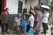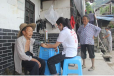 走访青龙村家庭住户为行动不便的老人测血压