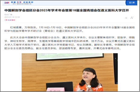 2023年7月16日-7月19日,中国解剖学会组胚分会2023年学术年会暨第18届全国组织学与胚胎学青年学术研讨会(青组会)在威廉希尔williamhill官方网站隆重召开。此次大会由中国解剖学会组胚分会主办、英国威廉希尔英文官网承办。