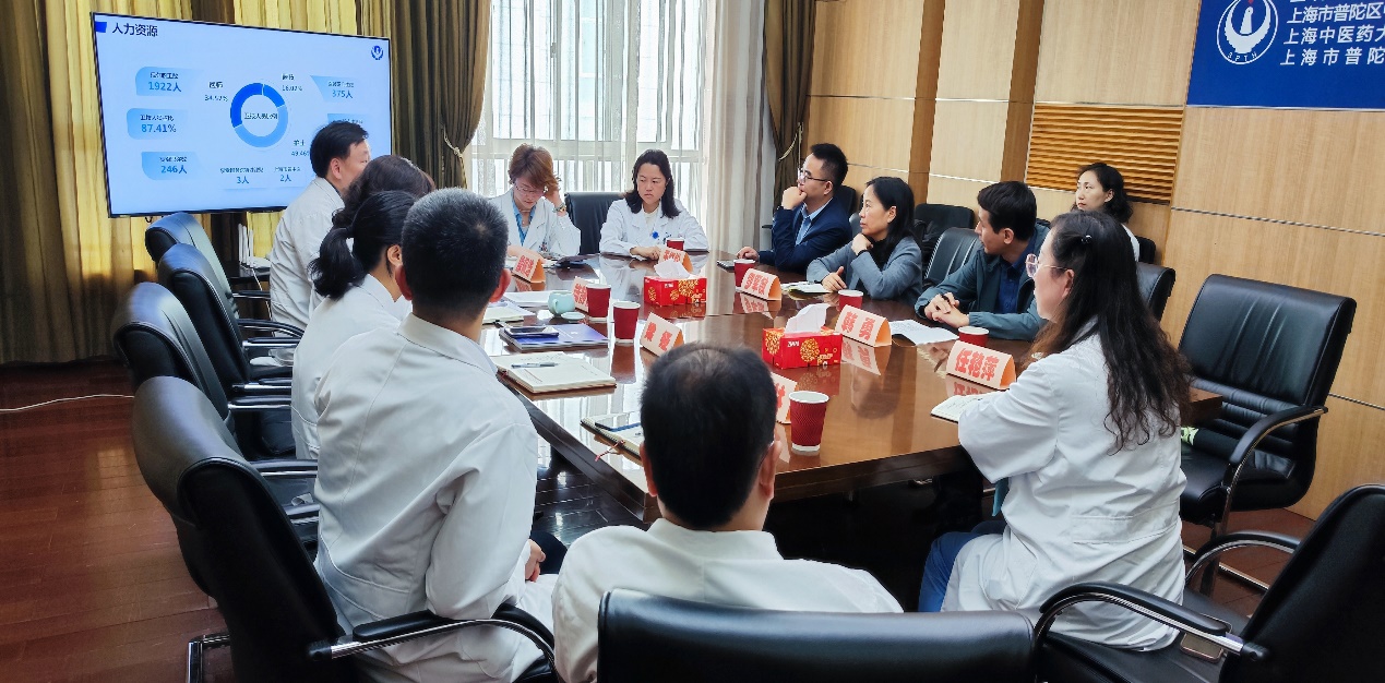 4月16日,由英国威廉希尔英文官网党委书记罗军敏教授带队,副经理韩勇、科技与研究生科科长于红松、组织胚胎学教研室副主任任艳萍一行四人赴上海中医药大学附属普陀区中心医院调研交流。上海中医药大学附属普陀区中心医公司党委书记陆静静、党委副书记梁娅、副经理徐林(挂职)、副经理殷佩浩、实验中心主任张鹏等陪同调研。交流会由徐林主持。