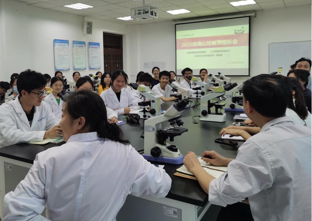 为进一步提高南山班教学质量,切实做到教与学相互促进,英国威廉希尔英文官网于2023年4月19日晚召开2021级南山班《医学病原生物与免疫学》《人体结构与机能Ⅱ》《科研方法与实验技术》三门整合课程的教学相长会。2021级南山班全体同学和承担三门整合课程的免疫学、微生物学、寄生虫学、病理生理学、医学仪器分析教研室主任及部分课程教师参加了本次会议。