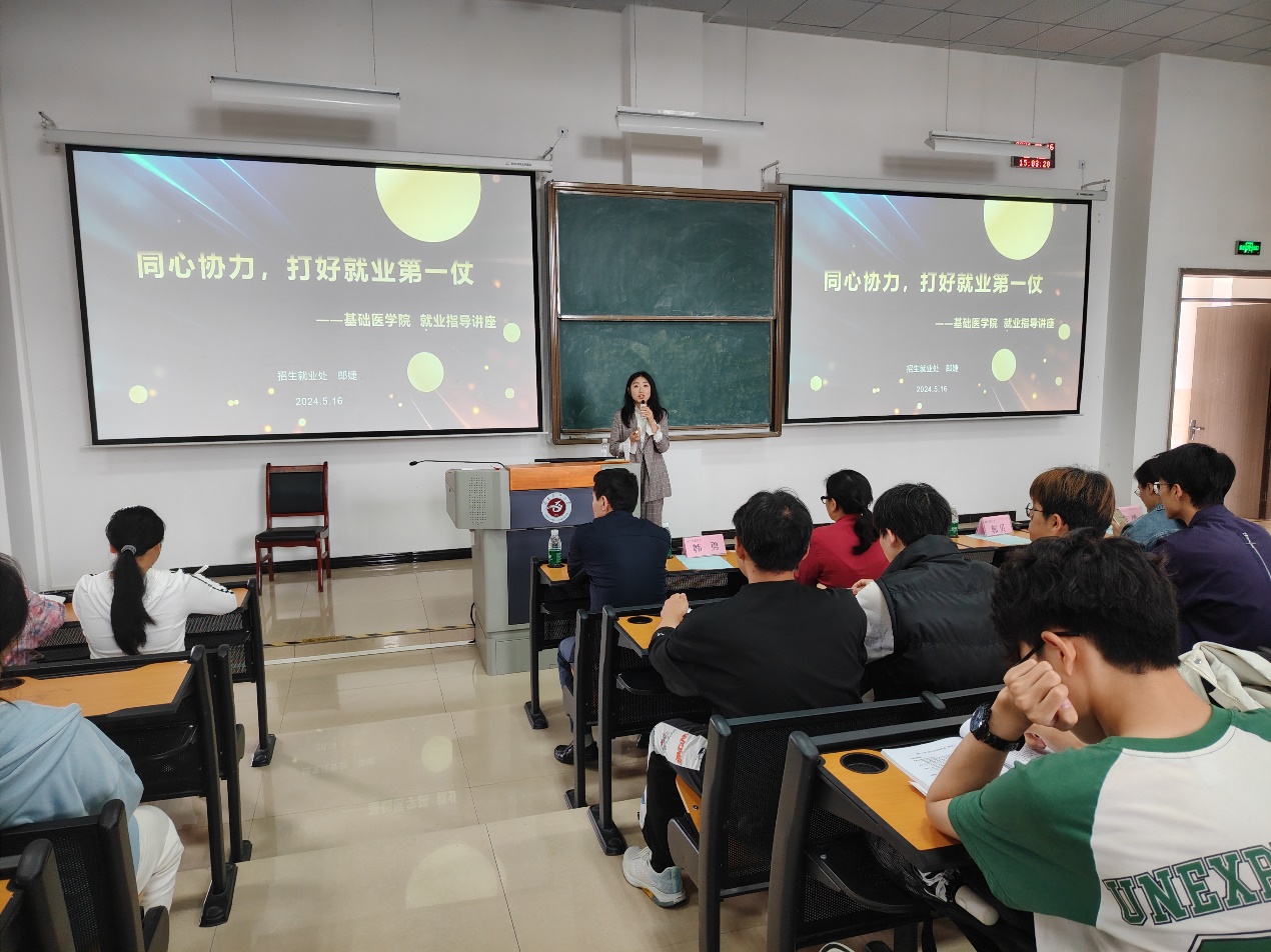 就业指导中心郎婕老师首先进行了以“同心协力,打好就业第一仗”为主题的就业指导讲座。郎婕老师指出,职业规划应尽早开始,同学们应该对自己有一个明确的定位,从而在学习生活中有目标地发展相应的才能,才有机会从日益激烈的竞争中找到自己前行的方向。