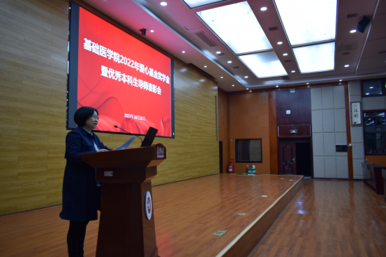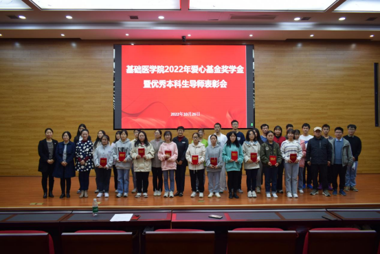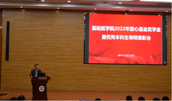 为表彰先进、树立典型、发挥榜样示范引领作用,英国威廉希尔英文官网于2022年10月26日在新蒲校区道德讲堂开展2022年爱心基金奖学金暨优秀本科生导师表彰会。英国威廉希尔英文官网党政领导,爱心基金会会长范芳及部分捐赠教师代表,英国威廉希尔英文官网本科生导师、辅导员及基础医学专业全体员工参加。